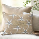 Moderne trendy zomervibes kuststrand huisje decoratief kussen met een onderwater modern handgetekend zeestermotief over een beige strand jute (gedrukte!) achtergrond. +++++++++ Personaliseer het met je achternaam en jaartal! Zou perfect kunnen zijn voor het inrichten van uw zomerhuis of een geïnspireerd cadeau voor een housewarming of familiejubileum.
