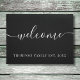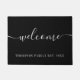 Elegante gepersonaliseerde familienaam deurmat met uw familienaam en uw oprichtingsdatum in klassieke witte tekst op een zwarte achtergrond met de boodschap "welkom" in een elegante witte scripttekst. Personaliseer met uw gegevens en kies de kleur naar uw wens. Ontworpen door Thisisnotme©