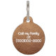 Een faux bruin leren huisdier label met ruimte voor de naam van uw huisdier en uw telefoonnummer of andere contactgegevens.