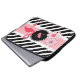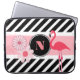 Een laptop cover/hoesje waar elke Flamingo enthousiast van zal zijn. Vette en moderne zwarte en witte strepen met roze accenten, bloemen en een Flamingo. Voeg monogram toe voor aanpassing.