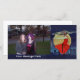 Deze fotokaart heeft een oud beeld van een heksenvrouw in een rode jurk die zweeft in de nachtblauwe hemel boven een skyline in de stad met een rode jurk met magisch stof uit haar vingertoppen voor luie wolken en een volle gele maan. Pas de tekst aan en voeg uw eigen foto met de sjablonen toe.
