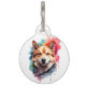 Waterverf hondenportret met rood, sinaasappel, blauw, paarse splash art versiert de voorkant van dit ID-label voor uw hond of kat. Pas de achterkant aan met de naam van uw huisdier en uw adres en telefoonnummer. U kunt zoveel of zo weinig informatie opnemen als u wilt. Wil je alleen de naam van het huisdier? Verwijder al het andere. Wil je alleen je telefoonnummer? Verwijder het adres. Helemaal aan jou.