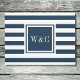Elegant stijlvol monogram van initialen met een stijlvol, gepersonaliseerd model met een blauw en wit gestreept patroon van de marine, met uw initialen in een vierkant vierkant met een klassiek wit vierkant. Pas uw gegevens aan en pas de kleur aan de kleur van uw keuze aan. Ontworpen door: Thisnotme©
