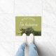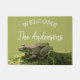 Welkom mensen op uw kikkervijver en huis in stijl met deze leuke gepersonaliseerde welkomstmat of deurmat. Het bevat een foto van een kikker zittend op een groene met mos bedekte rots tegen een felle olijfgroene achtergrond en is gepersonaliseerd met jouw naam in witte letters. Maakt een geweldig housewarming cadeau voor iemand die van kikkers houdt.