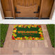 Verander de groene achtergrond achter dit ontwerp naar elke gewenste kleur. Fel gekleurde val laat de rand van de randen van de welkomstdeurmat. Welkom is gevuld met een diep sinaasappel dat is omzoomd met geel, dan groen. Personaliseer naar wens - of als u geen personalisatie wilt, verwijder de tekst.