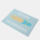 Welkom gasten in stijl met deze gepersonaliseerde deurmat met een illustratie van een longboard skateboard in een retro stijl. Het geelbruine, helderblauwe en heldergele skateboard is geplaatst tegen een lichtblauwe achtergrond met een welkomstboodschap en jouw naam in vetgedrukte witte letters.