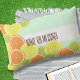 In dit ontwerp is een patroon te zien van de snijwonden van citrusvruchten in de zomer: sinaasappel, citroen en limoen. De originele voedselillustratie met gepersonaliseerde tekst maakt een moderne en unieke lumbale kussen buiten.