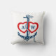 Nautisch anker gooit kussen met gepersonaliseerde monogrammen in het rode hart. Rood, blauw en wit De achterkant is blauw en je kunt de tekst ook daar personaliseren, nu staat er: "samen..voor altijd".
