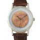Een prachtig centrum voor dit elegante horloge, versierd met een rauw rustiek houten stuk met gegraveerde bloemen. Zeer chique, rauw en modern. Je monogram is fijn gegraveerd in subtiele letters