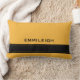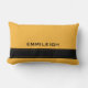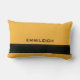Gepersonaliseerde mosterdgele lumbale kussen met één zwarte streep.
