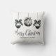 Voeg een feestelijke touch toe aan uw vakantie-inrichting met dit prachtig ontworpen kussen met vierkante worp, met het kunstwerk aan beide zijden. Het ontwerp toont drie elegante waterverf ornamenten in zacht zwart-wit tinten, geaccentueerd door delicaat groenblijvend groen en zoete strikdetails. "Merry Christmas" is geschreven in sierlijke script typografie, met uw familienaam hieronder weergegeven in een klassieke serif lettertype voor een persoonlijke touch. Dit kussen brengt een verfijnde en minimalistische vakantielook naar uw woonkamer, gastenkamer of een gezellige hoek. Alle lettertypekleuren en achtergrondopties kunnen worden aangepast aan uw stijl of seizoensthema. Een charmant en feestelijk accentstuk dat het hele seizoen door comfort en feestvreugde toevoegt.