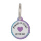 Verhoog de stijl van uw huisdier met deze aanpasbare blauwe en paarse bloemenronde huisdier naam tag. Dit unieke label heeft een ingewikkeld bloemendoedelontwerp in kalmerende blauwe en paarse tinten. De voorkant toont een charmante pootafdruk, terwijl de achterkant is versierd met een hartverwarmend liefdessymbool. De naam van je harige vriend buigt elegant langs de voorkant van het label, en hun veiligheid is een prioriteit met je telefoonnummer onderaan weergegeven. Op de achterkant stelt een zacht gebogen tekst "Reward if Found". Dit label is meer dan slechts een accessoire; het is een uiting van de individualiteit van je huisdier. Omarm de mix van esthetiek en veiligheid, want dit label dient als een stijlvolle toevoeging en een praktische identificatieoplossing.