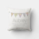 Bunting Flag tekening grafisch kunstkussen. Eenvoudig vlagontwerp op een witte achtergrond, of u kunt de achtergrond aanpassen aan de kleur van uw keuze indien nodig. Personaliseer met je eigen naam, initiaal op de middenvlag en jouw naam beschrijving, leest momenteel Aubrey. © Originele tekening en afbeelding door Sarah Trett. www.sarahtrett.com voor www.mylittleeden.com