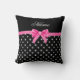 Gepersonaliseerde naam zwarte diamanten roze boog kussen