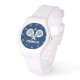Gepersonaliseerde padel tennis racket silicium sporthorloge voor vrouwen. Comfortabele zachte rubber siliconen sport pols horloge cadeau idee voor haar. Sportief navy blauw nummer wijzerplaat ontwerp met naam of monogram. Leuke vakantie of verjaardagscadeau ideeën voor moeder, zus, vrouw, tante, oma, bruid, dochter, meisje, beste vriend, collega, werknemer enz. Voeg uw eigen aangepaste naam initiaal letters. Diameter 33 mm.