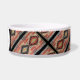 Een hondenbroodje gemaakt van witte keramiek heeft een mooi, boze, zigeunervormig achtergrondontwerp. Kies de persoonlijke optie en pas de kleur aan. HAMbyWhiteGlove.