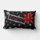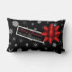 Deze schattige Lumbar Pillow ziet eruit als een feestelijk kerstcadeau! Het is voorzien van de trendy kerstkleuren zwart, rood en wit. Het knipperen van witte sneeuwvlokken op een zwarte achtergrond simuleert het omslagpapier en het is afgetopt met een , realistische rode stervormige boog en een kerstlabel die gemakkelijk kan worden gepersonaliseerd. Deze feestelijke kussen zijn de perfecte aanvulling op je huis dit vakantieseizoen.