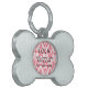 Geef je viervoeter het beste met een op maat gemaakt roze damast botvormig label voor huisdieren. Gemaakt van gepolijst zilver en bedrukt in levendige kleuren, zullen uw afbeeldingen, design en tekst prachtig worden weergegeven vanuit elke kraag. Draag Ontworpen om zelfs de meest avontuurlijke huisdieren te weerstaan, heeft dit label een UV-bestendige en waterdichte coating die jarenlang meegaat. Huisdier tags komen in een zwarte vilten tas, perfect voor gifting. · Gemaakt in de VS. · UV-bestendig en waterdicht. · Voeg foto's, illustraties en tekst toe. · Grootte: 1,5" x 1,5".