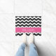 Gepersonaliseerde roze en zwarte Chevron Deurmat