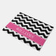 Aangepaste klepklep van het chevron-patroon. Een chic en modern design is zwart, wit en roze. Eenvoudig aan te passen met je familienaam.