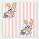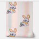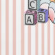 Dit behang is voorzien van een floppy, gevuld, calico konijn spelen w / a set van vilten alfabet blokken tegen een roze gestreepte achtergrond. Coördineert met alle design en producten in de "Blue Plaid Nursery Art"-serie van HoMeArts.