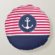 Rond kussen met rode en blauwe strepen, anker en aangepaste naam.