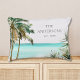 Breng tropische vibes naar uw strandhuisdecor met dit gepersonaliseerde accentkussen! Met waterverf palmbomen, een blauw strandtafereel en zomerse kustcharme.