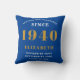 Gepersonaliseerde verjaardag blauwe normen geboren 1940 worp kussen. Pas de tekst van dit verjaardagskussen eenvoudig aan met behulp van de meegeleverde sjabloon. Onderdeel van de normen die worden gesteld, zijn kaarten en geschenken.
