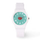 Gepersonaliseerd modern stijlvol licht blauwgroen, wit en rood polshorloge ontwerp met de voor- en achternaam van de eigenaar. De letters staan op de wijzerplaat in plaats van de cijfers. Het horloge zegt Amelia Smith. In het midden van de wijzerplaat zitten rode lippen voor accentkleur, boven hen staat de rode naam Amelia. U kunt de achtergrondkleur, letterkleur, lettertype en uw voor- en achternaam wijzigen door op de knop "Aanpassen" te klikken en vervolgens op het opschrift "Klik om verder aan te passen". Als u uw voor- en achternaam niet zelf kunt schrijven, neem dan contact met mij op via een persoonlijk bericht.