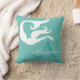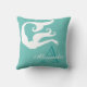 Ontworpen door Sandy Closs, een deel van het oceaangebonden decor. Gepersonaliseerd met de naam monogram White mermaid op Aqua Blauwgroen blauw kussen.