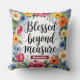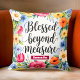 Een kleurrijke waterverf krans van wilde bloemen rond de zin "Blessed Beyond Measure" in prachtige, elegante, gedurfde kalligrafie typografie. Gepersonaliseerd met naam.