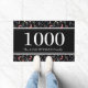 Gepersonaliseerde zwarte Floral Doormat, met groot 4-cijferige getal en monsterfamilienaam in witte typografie. Het aantal is (volledige breedte) en de lijn van de familienaam kan met alternatieve teksten worden vervangen. De achtergrondkleur (en het paneel) kunnen worden veranderd door te klikken verder aanpassen. Dit zou een geweldig gepersonaliseerd cadeau zijn voor New Homes.