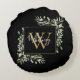 Gepersonaliseerde zwarte goudmonogram Greenery Flo Rond Kussen