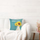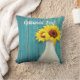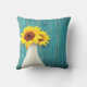Gepootte zonnebloemen boven een roestvast verweven houten plank geverfd in blauw zee glas. Aanpassen aan je wensen!