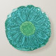 Gerbera Daisy Block Print, Turquoise en Aqua Rond Kussen