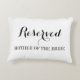Gereserveerde kussens voor de bruiloft. Elegant scriptkalligrafie-typografie. Zwart-witte of aangepaste kleuren. sjabloon. Kutteken voor een stijlvol bruiloft, een stijlvol vrijgezellenfeest, een fancy jubileum, een chic verloving, enz. Dubbelzijdig ontwerp. Maak je eigen voor bruid en bruidegom, bruidsmeisjes, bruidsmoeder, bruidsvader, bruidsmeisje, groomsmannen, VIP-gasten en andere familieleden, enzovoort. Handig voor ontvangst en ceremonie.