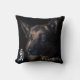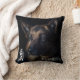 Zwarte kussen met afbeelding van een Duitse herder die je kunt vervangen door je eigen afbeelding of gebruik. Voeg de naam van uw huisdier en de datum van overlijden toe.