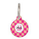 Geruite perzik hete roze geometrische retro Monogram Pet ID tag. Geruite vierkanten geometrische retro patroon cadeau voor honden. Koel retro geruit geometrisch vierkant patroon. tegel perzik roze moderne checker. Personaliseer met uw aangepaste initiaal en naam en contactgegevens.