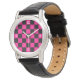 Geruite vierkanten heet roze zwart geometrisch retro patroon Mode Accessoire Polshorloge cadeau voor haar. Koele retro geruit geometrisch vierkant patroon. tegel zwart en hete roze modern checker.