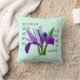Een bloemkussen van geschilde bloemen (paarse iris op de achtergrond van de munt) met vers van Psalm 118:24 Dit is de dag die de Heer heeft gemaakt; laten we blij zijn en blij zijn .