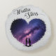 Een droomachtig kosmisch liefdesverhaal ontvouwt zich in een gloeiend hart gevormd uit sterrenstof en sterrenstelsels. Tegen een diepe zwarte nacht staan twee silhouetten hand in hand onder een adembenemende werveling van paarse en blauwe nevels, die een band symboliseren die door het universum zelf is voorbestemd. Dit kunstwerk legt de romantiek, het lot en de tijdloze verbinding vast—waar liefde werkelijk geschreven is onder de sterren.