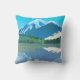 Gooi het kussen in een digitaal schilderij van met sneeuw bedekte bergen en dennenbos, gereflecteerd in een meer, onder een diepblauwe hemel