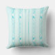 Dit vierkante kussensloop kunstwerk beschikt over een gladde donkere turquoise, gespiegelde verticale bar print op een zachte azuurblauwe, cyaan-mist achtergrond.