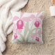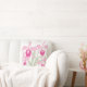 Een gedurfd bloemenkussen in roze en groene tinten op een witte achtergrond. Ziet er geweldig uit in een zomerkamer of slaapkamer. Originele grafische print van een gestileerde Cattleya sympodiale orchidee van Sarah Trett. www.sarahtrett.com