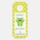 Super schattige deurhanger laat iedereen weten dat baby slaapt! Versierd met polka stippen en een gestreepte groene monster. Voeg de naam van je baby toe!