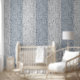 Een traditionele gebarsten verftextuur in een gestreept patroon roept een esthetische sfeer op voor nautische, cottagecore en boerderij tot boheemse en gotische stijlen. Gestreepte crackle textuur wit en blauw behang