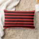 Deze worpkussen is weergegeven in een leuke zwart-rode strepenprint.