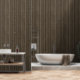 Dit behang heeft een naadloze herhaling van handgetekende organische strepen in tonale bruinen voor een monochromatische moderne look.