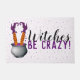 Superschattige heks met de naam Halloween design. Het ontwerp omvat een heksenhok gevuld met een paarse heksenbrew. Er is een heksenhoofd in de brouwerij met alleen haar benen en voeten die uit de brouwerij steken. De heks draagt oranje kousen met zwarte polka stippen en paarse heklaarzen. Rechts van de gekke heks en haar cauldron staat een tekst in het zwarte en paarse lettertype die zegt: Witches zijn gek! Dit grappige heksenontwerp is de perfecte aanvulling op je huizen herfst en Halloween decor!