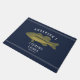 Uw gepersonaliseerde deurmat voor uw visserslodge of uw stadshuis. Marine blauw, uw familienaam, groene bas, uw lodge of hut en het jaar. Lettertype in wit om aan te sluiten bij de nautische touwranden. Als je thuis bent, show je hobby. Als je in de lodge bent, geniet dan van je hobby.